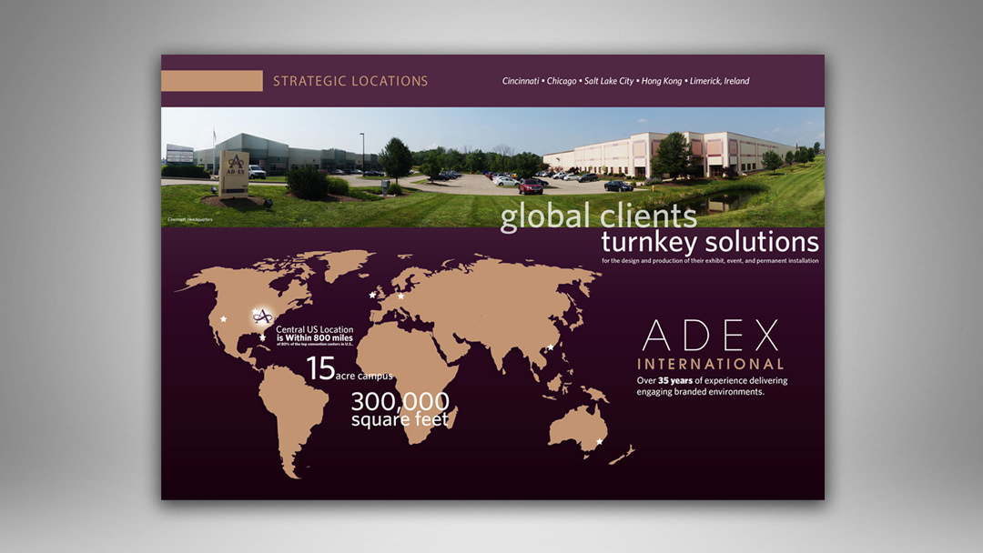 My journey with ADEX began in 2008 as an entry level Jr. Graphic Designer. Several years into the position I shifted into a brief Graphic Coordinator role, and then settled into a Sr. Graphic Designer role as I pursed my BA in graphic design at the Art Institute of Cincinnati. My College AIC Thesis was a focus on establishing ADEX International's Branding Guidelines.